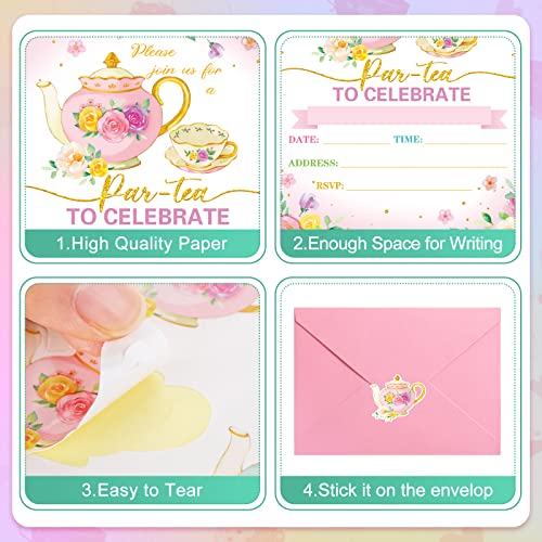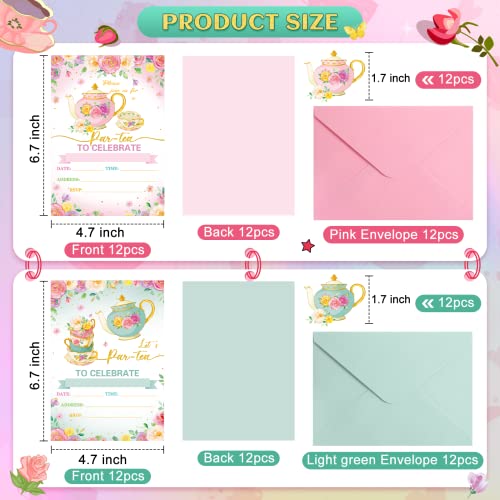Package Included: you will receive 24 pieces of tea party invitation cards, 24 pieces of envelopes and 24 pieces of matching stickers, sufficient quantity and nice combination can satisfy your tea party needs