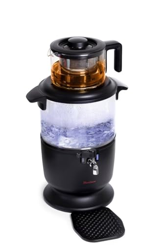 Turkish style samovar with keep warm function and stainless steel filter with two LED light red and blue for boiling and keep warm function and (SCHOTT) glass Germany