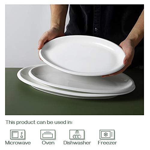 DOWAN Large Serving Platter, 16″/14″/12″ Oval Platters Oven Safe, White Serving Plates for Wedding Decor, Ceramic Serving Dish for Entertaining Food, Set of 3