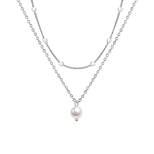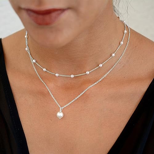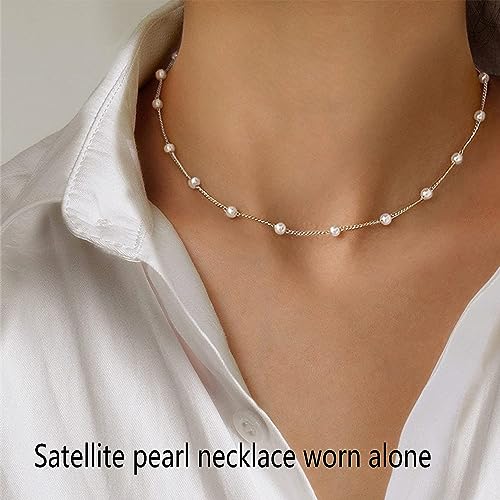 Dainty Pearl Necklaces for Women 14K Gold Plated Layered Pearl Necklace Simple Pearl Choker Necklace Jewelry Gift